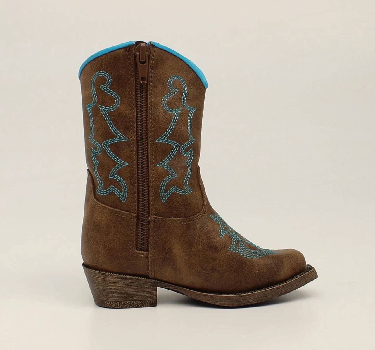 Brown Caroline Boot with Scrolling Turquoise Western Stitching.