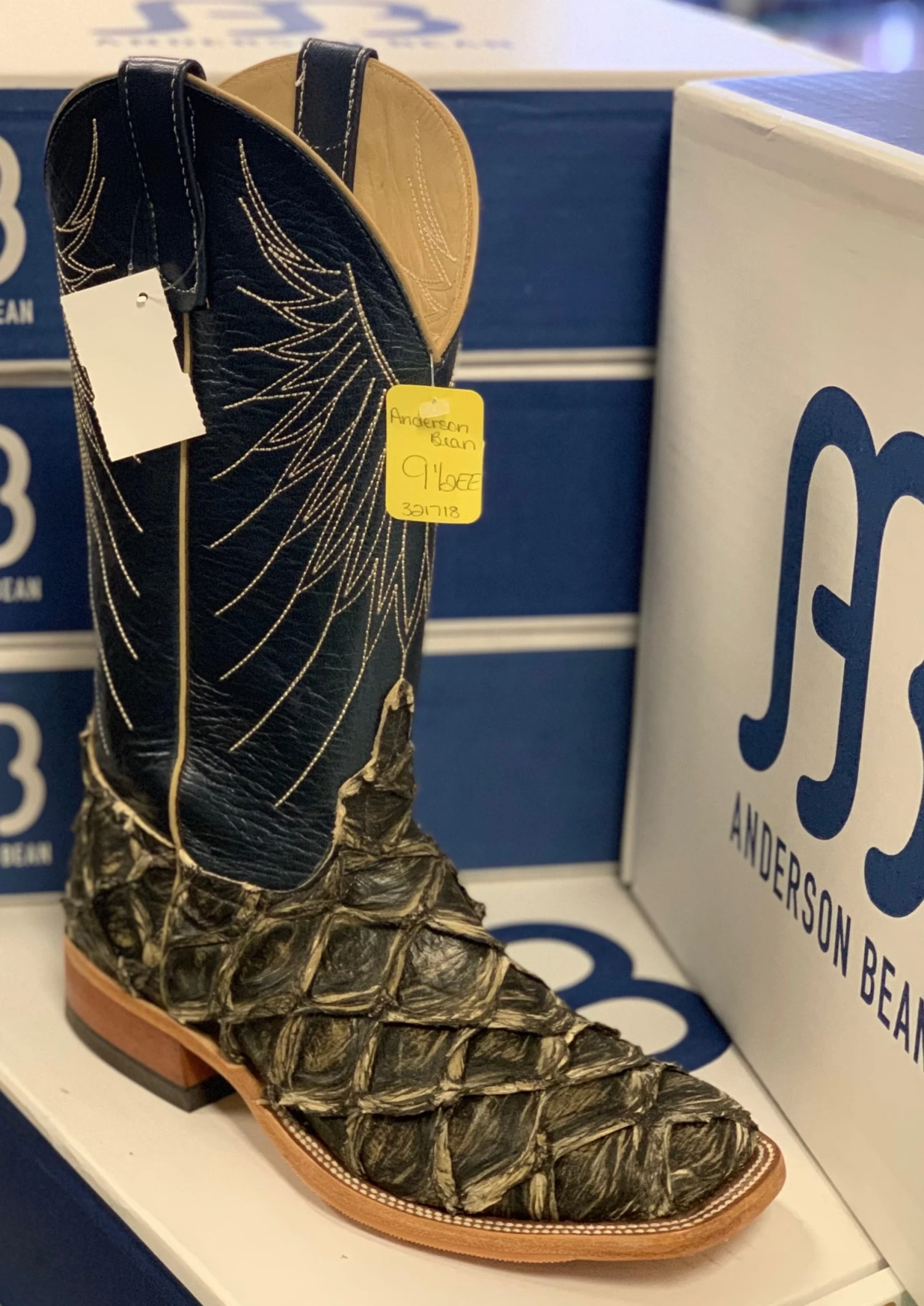 Brown Raven Bass and Regal Blue Lustre Western Boot.