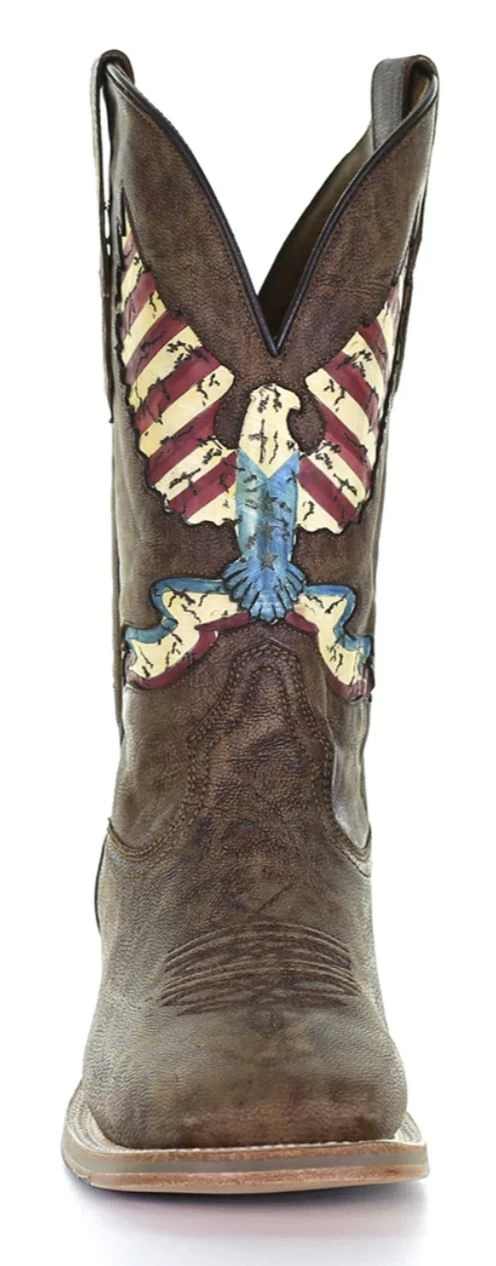 Brown Western Boot with Red, White and Blue Eagle Inlay.