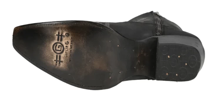 Black Embroidered Zipper Ankle Western Boot.
