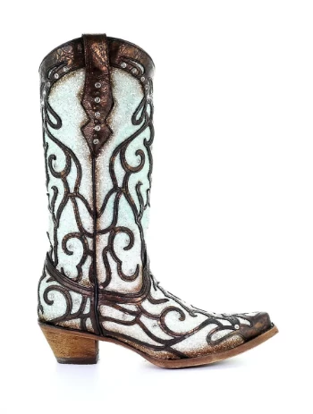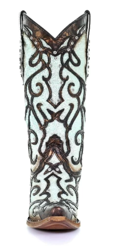 Sky Blue Glitter Inlay and Crystals Western Boot with Brown Overlay.