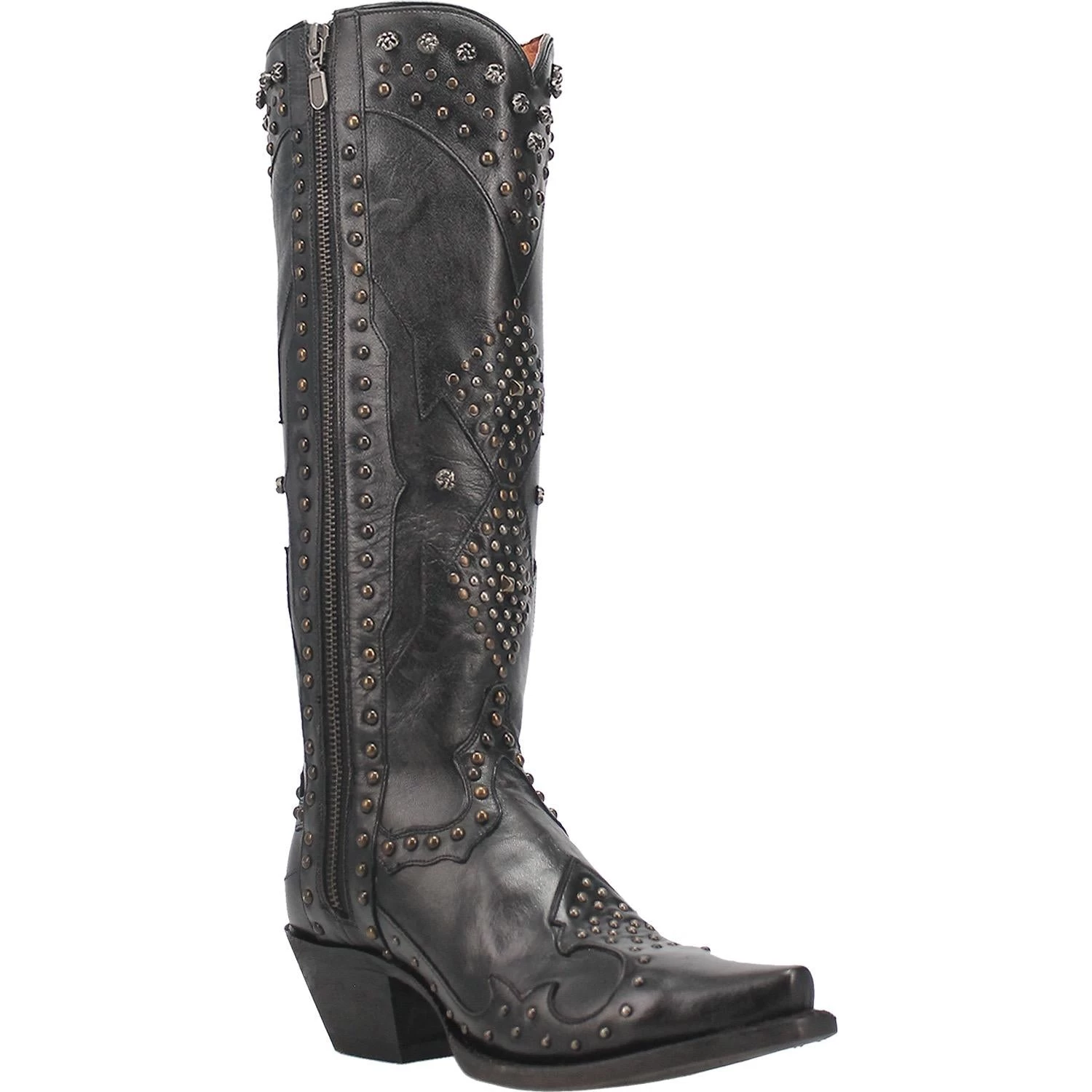 Black Daredevil Western Boot with Overlay and Stud Detail.