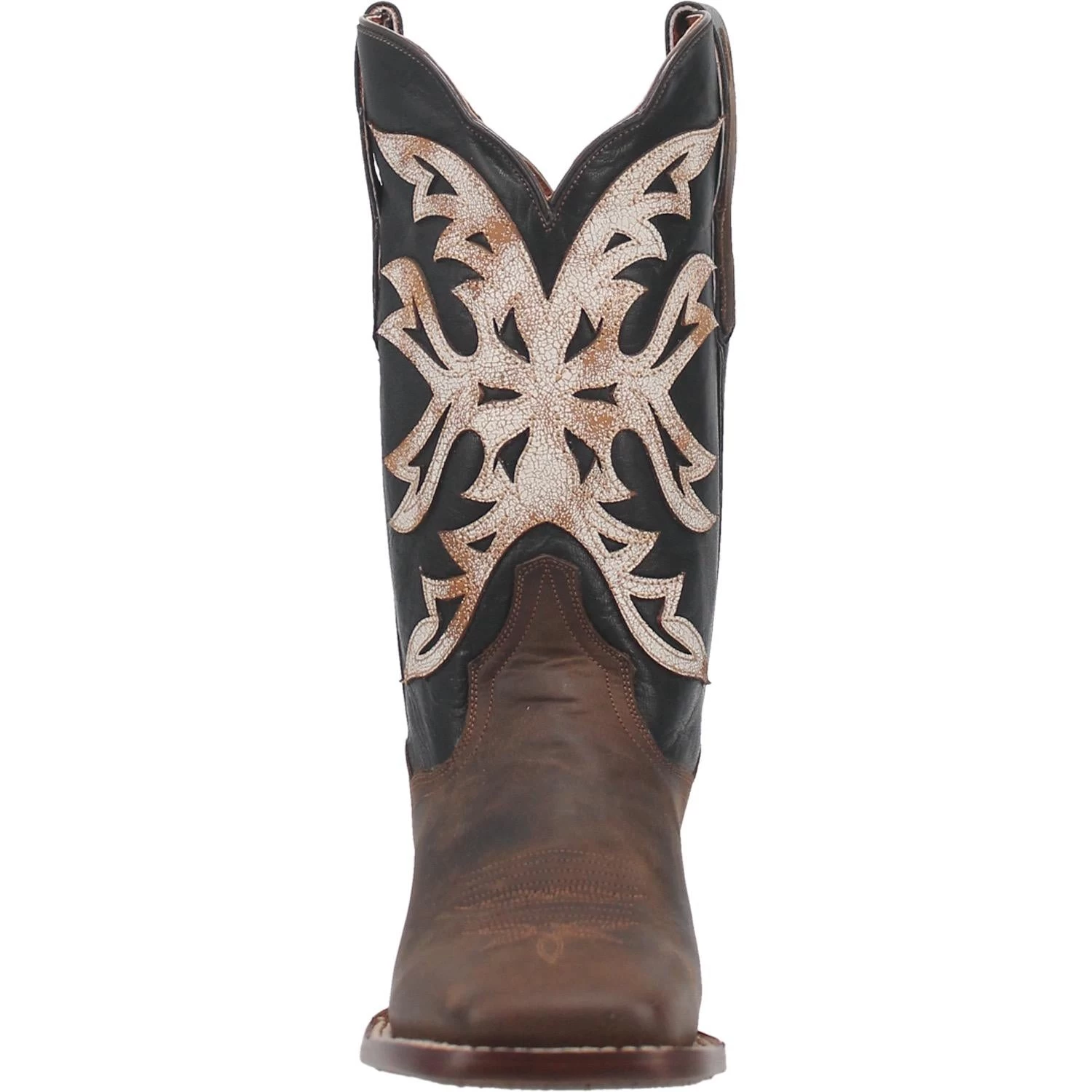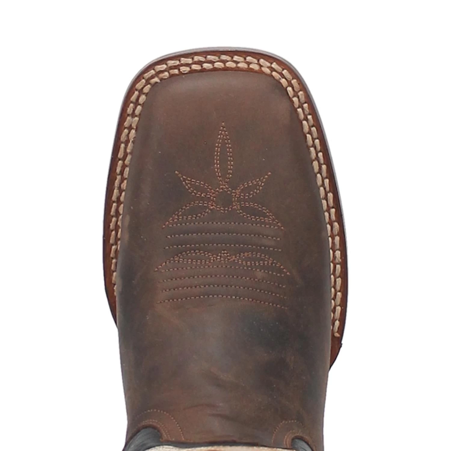 Distressed Brown and Black Sure Shot Western Boot with Vintage White Overlay.