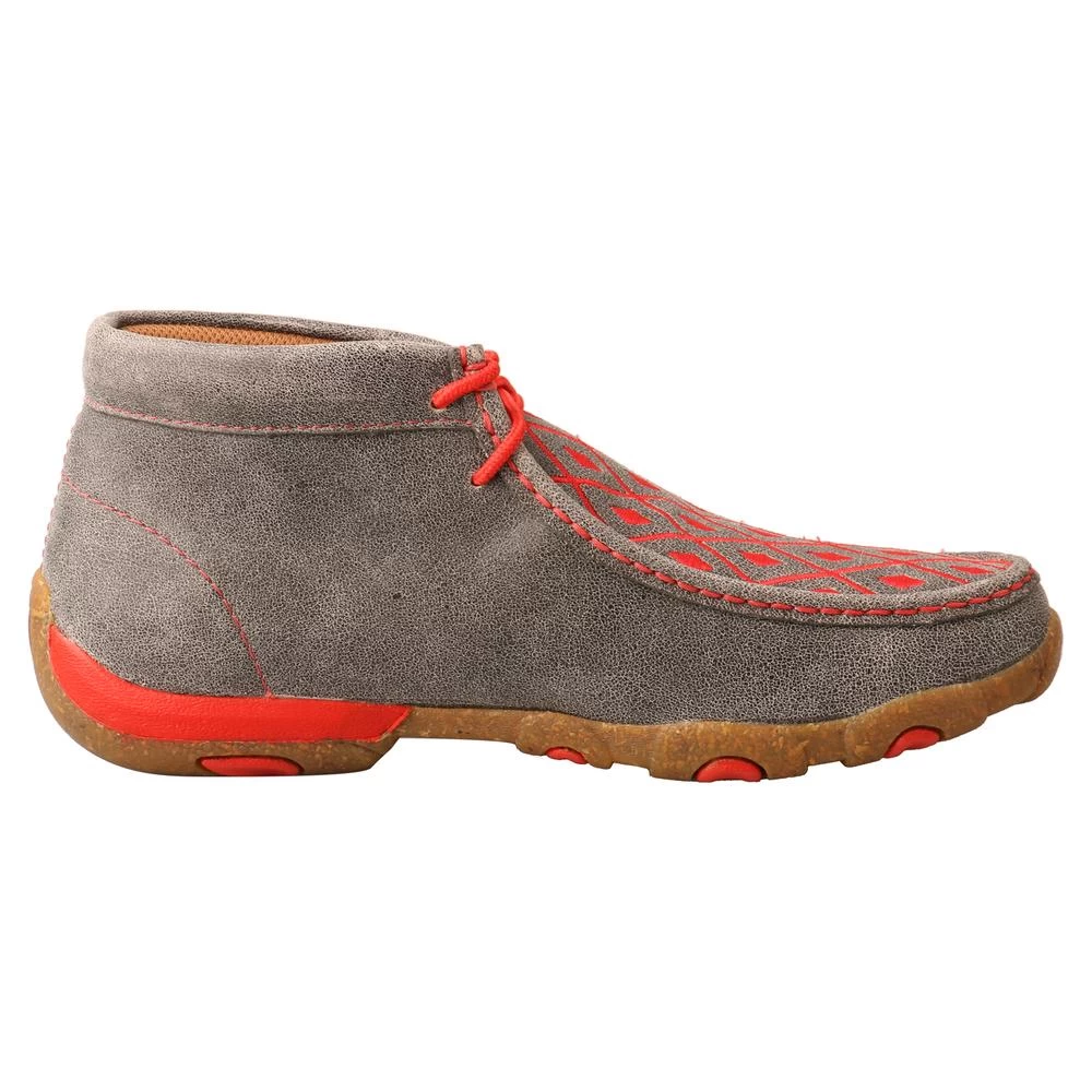 Grey Chukka Driving Moc with Grenadine Diamond Stitching.