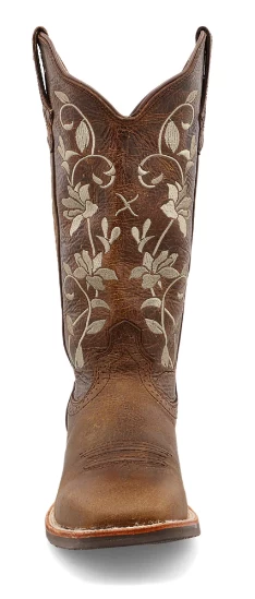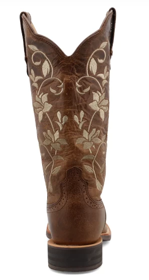 Oiled Brown Ruff Stock Western Boot with Floral Embroidery.