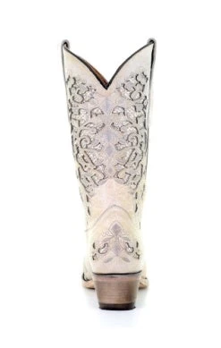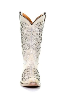 White Glitter Inlay and Embroidery Western Boot.