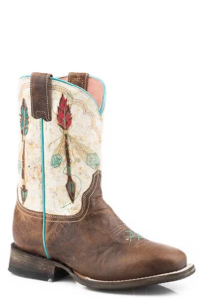 Vintage Tan and Vintage White with Embroidered Arrow-Feather.