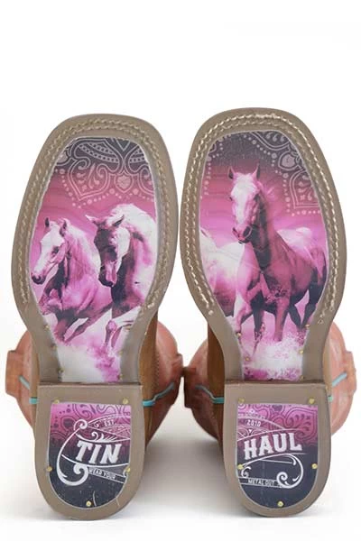 Burnish Brown and Pink Split Horse Western Boot.